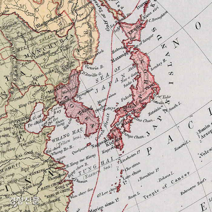영국 에든버러 출신 지도제작자인 바돌로매가 1871년 런던과 에든버러에서 출판한 ‘아시아지도’