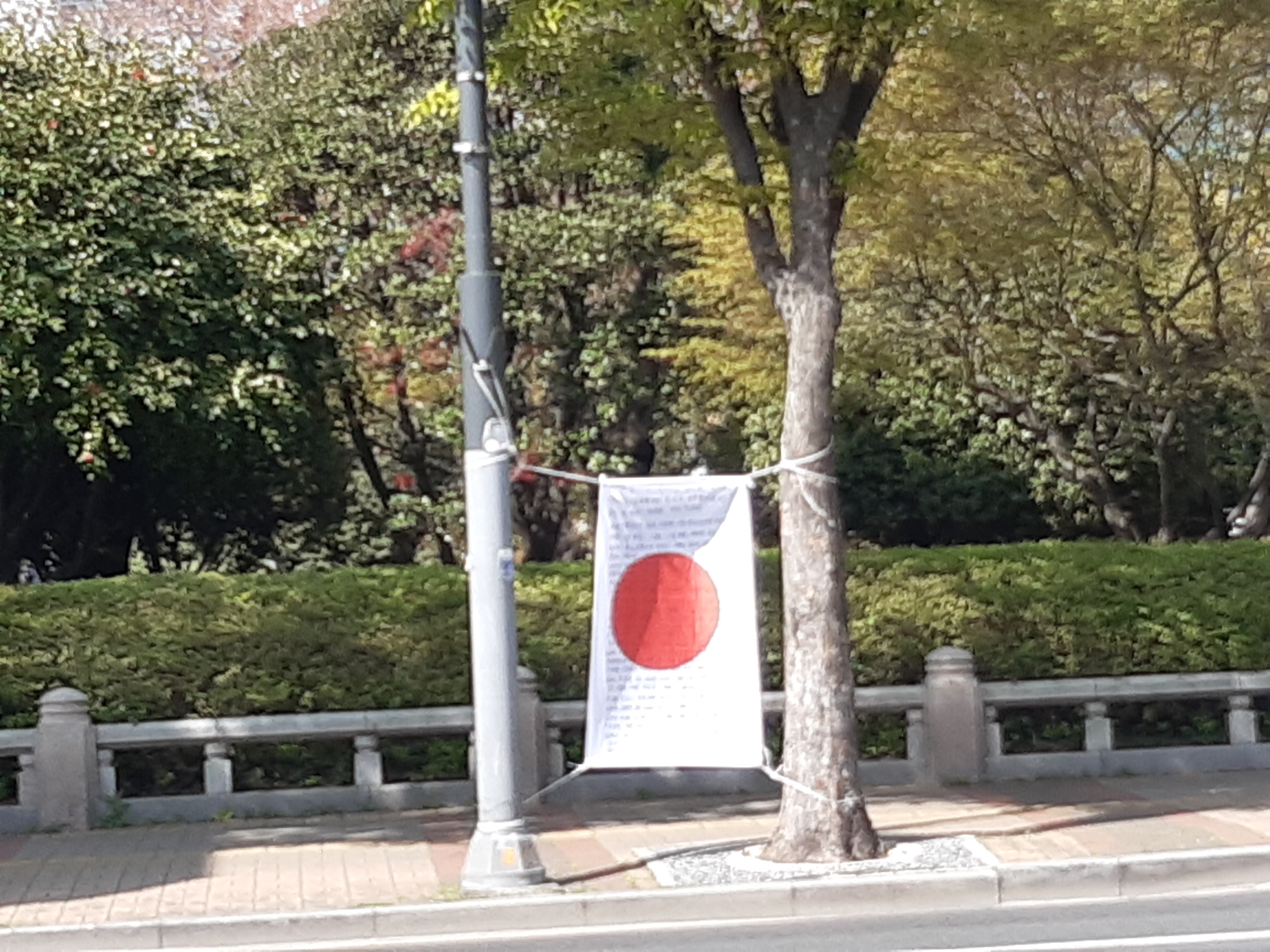 오늘4월3일 오전 울산시청앞 걸린 일장기 사진 입니다 시청관계자 경찰신고 후 자진 철거했습니다.