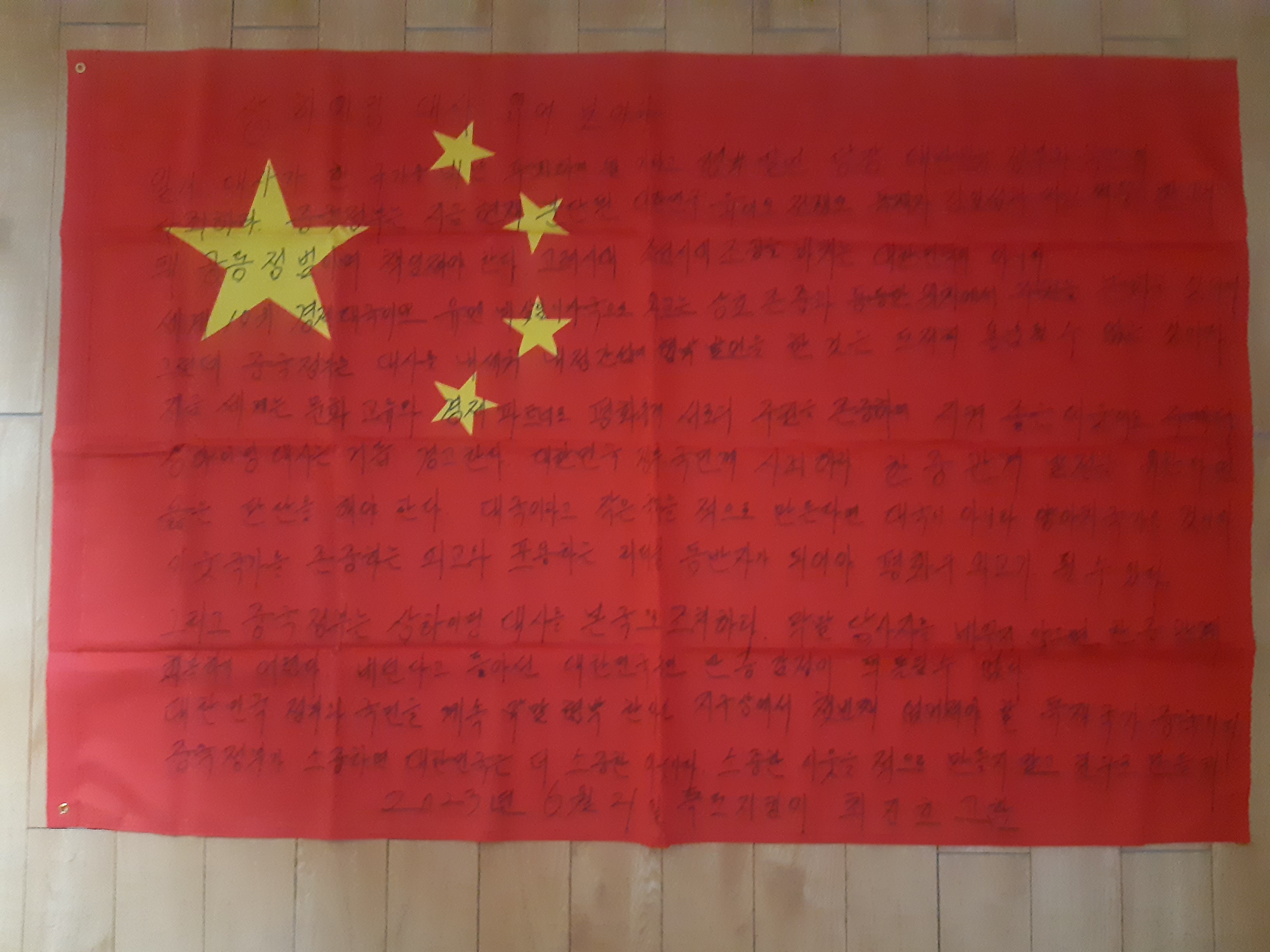 싱하이밍 중국 대사 막말에 중국 국기에 항의글 적어 보낸 것이다
